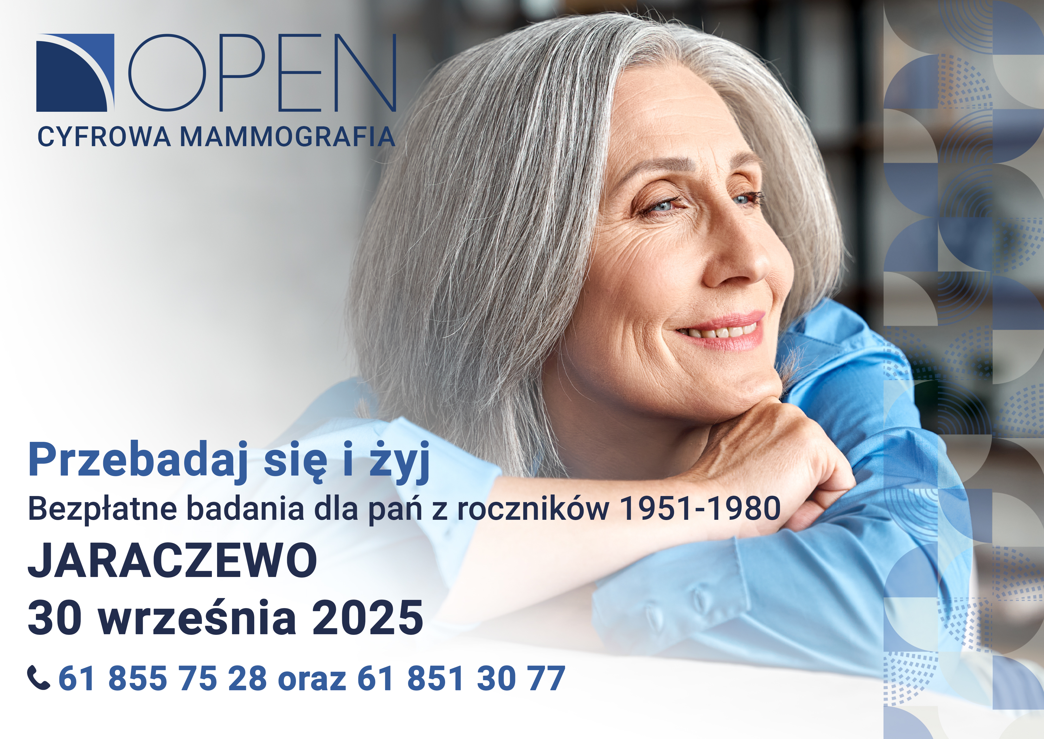 Ministerstwo Zdrowia oraz Narodowy Fundusz Zdrowia realizuje program wykrywania raka piersi metodą mammografii przesiewowej. Głównym celem jest doprowadzenie do zatrzymania wzrostowych wskaźników zachorowalności na raka piersi w Polsce oraz zmniejszenie poziomu umieralności na ten typ choroby. W dniu 30 września 2025 r., już po raz 10 dziesiąty w tym roku, dla mieszkanek naszej gminy badania mammograficzne przeprowadzone będą w Jaraczewie.